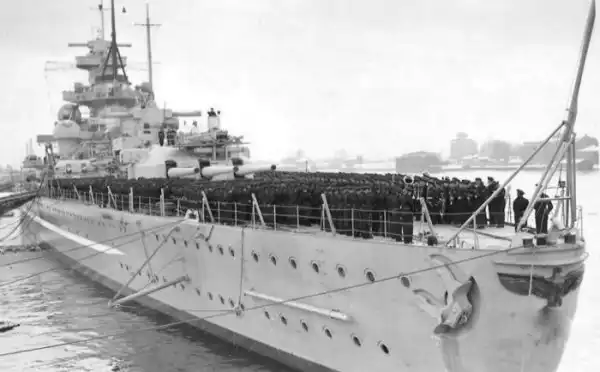 Гитлер, одержимый идеей стать единовластным правителем воды и суши, на пике политической карьеры приказал судостроителям спроектировать и построить такой крейсер, боевые характеристики которого в разы превосходили бы все имеющиеся на данный момент корабли. Важнейшей задачей фюрера было моральное подавление противников. Триумф произвести не удалось. Случилось просто ужасное - в октябре 1936 года при спуске на воду, под ликующие крики толпы, символического битья бутылки шампанского самим фюрером, крейсер «Шарнхорст» рухнул на стоявшие рядом сдвоенные баржи, просто раздавив их. Сам же крейсер получил очень серьезные повреждения. Все семидюймовые тросы лопнули. «Подлая сталь Круппа», - в ярости сказал Гитлер, - «как можно скорей отремонтировать корабль». «Это недоработка господ инженеров, которых следует наказать», - решил фюрер, когда в сухом доке, из-за неправильных действий рабочих, крейсер перевернулся, угробив 60 человек. И хотя ему докладывали о возможности диверсии, Гитлер в это не поверил. Инженерам было строго на строго запрещено покидать судостроительный завод. Причем этот запрет действовал вплоть до завершения постройки и испытания корабля на воде. Дэйв Цвингер поясняет, что это практически тюремное заключение инженеров, техников и рабочих выполнялось до мая 45-го года. Жили они в бараках. Персонал, отвечающий за выполнение военных заказов, находился под стражей почти 10 лет.