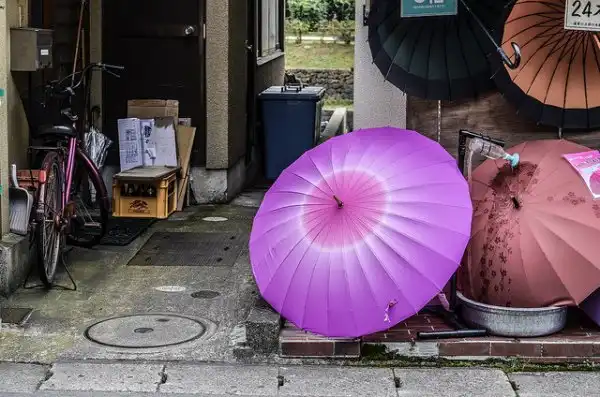 15. На улицах Японии можно увидеть специальные подставки с зонтиками. Если начнется дождь, то можешь взять любой зонтик. А когда осадки прекратятся, зонтик следует оставить в ближайшей подставке.