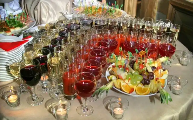 Конкурс довольно суровый, но увлекательный. Участники забираются под стол, на котором стоит достаточное количество спиртного и рюмок и легкой закуски.