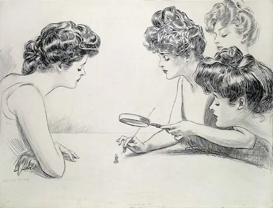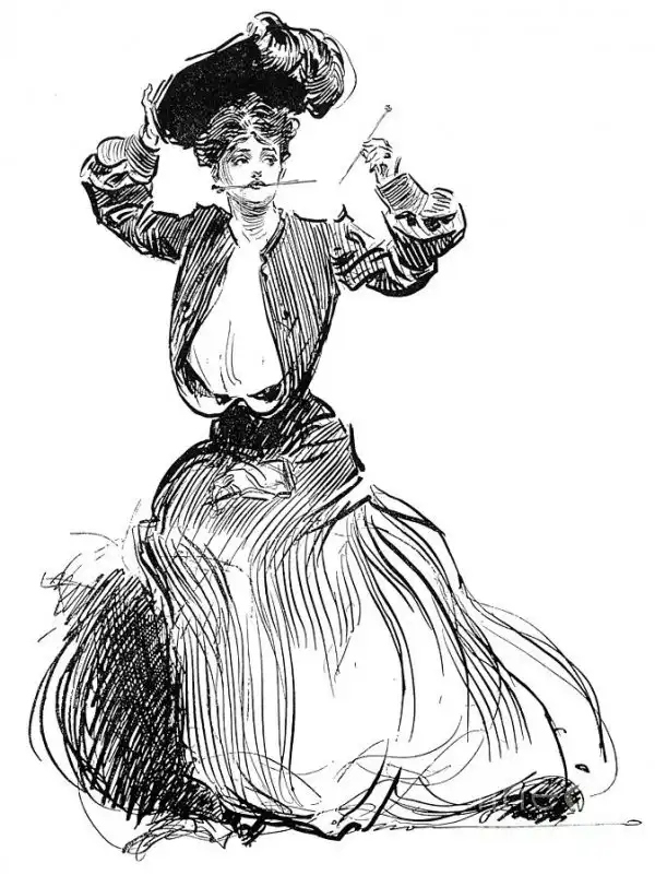 В 1895 году, в американском журнале "Life" еще кое что произошло. Иллюстратор журнала Чарльз Дана Гибсон опубликовал свои эскизы, нарисованные чернилами и карандашом. Это были его представления о новой американской девушке-активной, прогрессивно мыслящей, свободной от условностей.