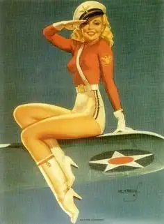Когда началась Вторая Мировая, пин ап снова был призван на службу. Солдату было воевать проще за свою офигительную девушку, которая ждала его дома. А пока-призывно смотрела с обложки журнала. Эти обложки, вырезанные картинки, мутные фото-все это было приклеено на крышке его сундука. Воевали за Родину, конечно. Но родиной была белозубая пухлогубая красотка.