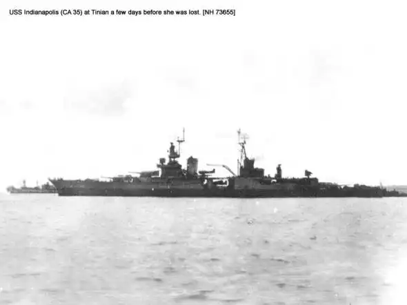 К острову Тиниан в Марианском архипелаге "Индианаполис" прибыл ночью 26 июля. Луна, вставшая над океаном, заливала своим мертвенно-призрачным светом бесконечно катящиеся к песчаному берегу вереницы волн, украшенных белыми плюмажами гребней. Первобытная красота этого зрелища совсем не приводила кэптена Маквея в восторг: из-за волн и глубин близко к берегу не подойти, а тут ещё эта проклятая луна висит над головами, как огромная осветительная ракета, превращая все корабли на рейде острова в идеальные мишени для ночных торпедоносцев. Авиация США полностью господствовала в небе над Марианами, но Маквей уже достаточно изучил отчаянность самураев и их склонность к авантюрным выходкам.