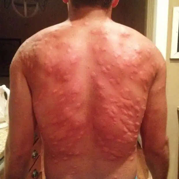 После укусов спина Джордана, страдающего астмой, стала выглядеть так. Оказалось, что у парня была аллергия.