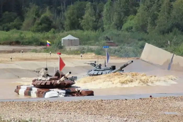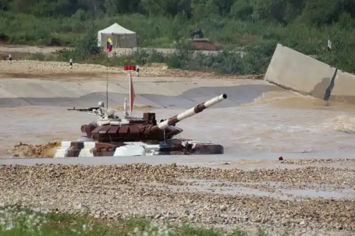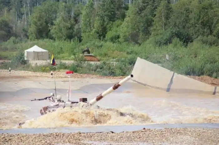 На первых в истории международных «Армейских играх 2015» произошло очередное происшествие. Оно было не таким трагическим, как падение вертолета МИ-28Н, так как обошлось без жертв. Во время соревнования по «танковому биатлону» танкисты из Венесуэлы на полном ходу влетели в ров, наполненный водой, после чего машина уже не смогла из него выбраться без посторонней помощи. Танкистам предоставили второй танк, чтобы они смогли заново пройти водное препятствие, а застрявшую машину пришлось вытаскивать при помощи специальной техники.