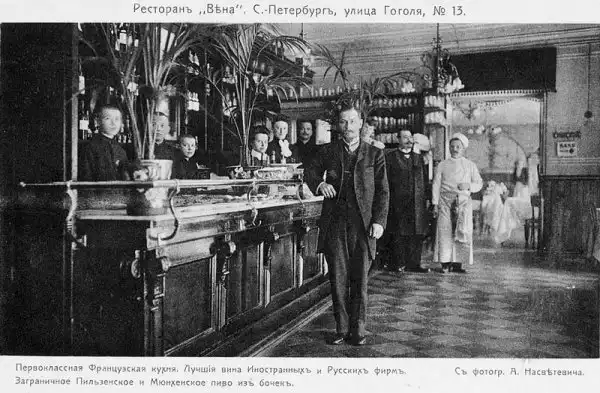 Французский журнал La Revue задумал и привел в исполнение интересную анкету на тему «Как и что пьют французские писатели?». Одна из петербургских газет, вдохновившись этим примером, произвела подобную же анкету среди русских писателей. И в результате получился вывод, что ни французские, ни русские писатели и в рот хмельного не берут, а только и мечтают о чистой ключевой воде. Не знаем, насколько это верно относительно французских писателей, но относительно русских мы решили проверить анкету по способу audiatur et altera pars . Так как в данном случае altera pars являются буфетчики посещаемых русскими писателями ресторанов, то мы и очутились первым долгом у буфетчика литературного ресторана «Вена» .