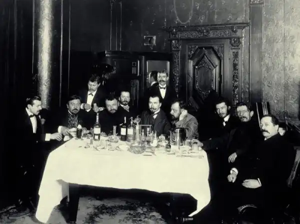 Буфетчик ресторана «Вена»: «Русские писатели пьют преимущественно очищенную, но не брезгуют и пивом, которое спрашивают всегда бокалами. Когда средства позволяют, русские писатели охотно требуют и коньяку, предпочитая хорошим, но дорогим маркам плохие, но зато дешевые вина русские писатели пьют редко — только когда их угощают, — что же касается ликеров, то склонности к ним не чувствуют, предпочитая повторить коньяк, чем перейти на ликер.