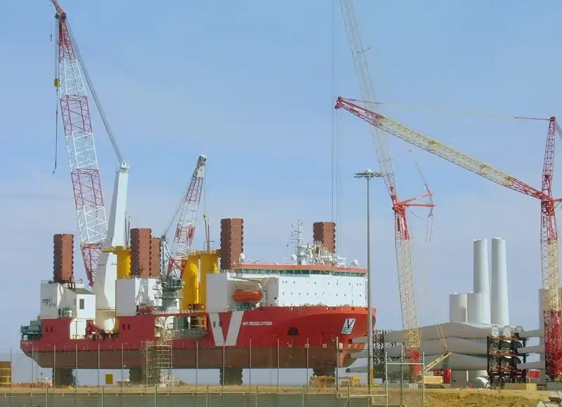 Например, на форуме по оффшорной ветряной энергии в июле 2010, компания Samsung Heavy Industries представила новую баржу по установке ветряных турбин, компания Beluga Hochtief Offshore представила проект по новому поколению судна по установке ветряных турбин. Судно может работать с турбинами более 5 мегаватт мощностью в глубоких водах и на больших расстояниях от порта. BLM представила суда с использованием реечно-шестереночных систем. Реечно-шестереночные устройства представляют собой зарекомендовавшую себя технологию для самоподъемных объектов, таких как суда для установки ветряных турбин. Huisman представил требования к оффшорным кранам. Компания-производитель кранов расширила ряд своих тяжеловесных продуктов, добавив в него специализированные краны для установки ветряных турбин. Краны являются одним из наиболее важных элементов для установки ветряных турбин и нужны для упрощения процесса установки фундамента, башен и турбин.