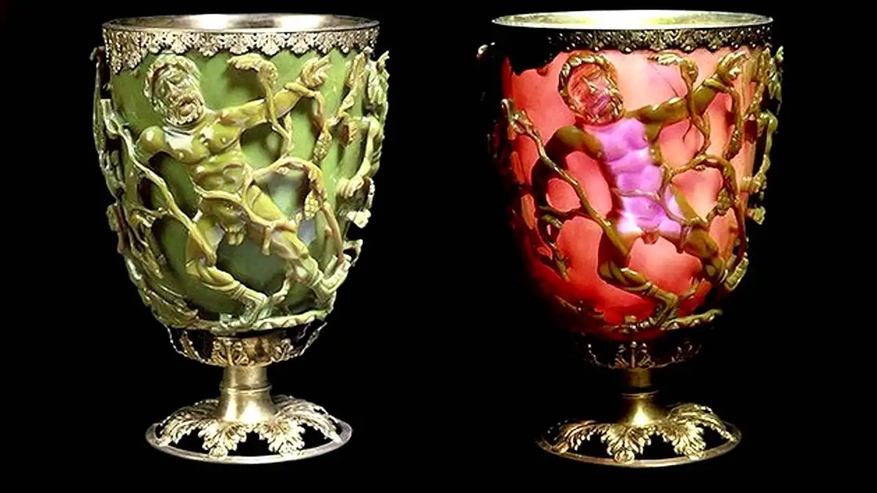 Стекло при изготовлении кубка древние римляне использовали необычное – дихроичное, имеющее свойство изменять свой цвет. При обычном комнатном освещении такое стекло отдаёт красным цветом, но при изменении внешнего освещения оно меняет цвет на зелёный. Необычный сосуд и его таинственные свойства всегда привлекали внимание учёных из разных стран. Многие из них выносили свои гипотезы, доводы их были научно не обоснованы и все попытки разгадать секрет таинственного изменения цвета стекла оказывались тщетными. Лишь в 1990 году учёные выяснили, что такой необычный эффект создается потому что, дихроичное стекло в очень малом количестве содержит в себе серебро и коллоидное золото. Исследовавший чашу археолог из Лондона по имени Йен Фристоун считает, что создание этого кубка это «удивительный подвиг». При обзоре кубка с разных сторон, находящегося при этом в статичном положении, меняется его цвет.