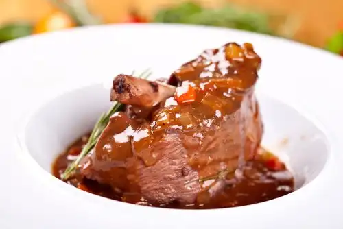 Подавайте жаркое с гратеном из фасоли и мясным соком.