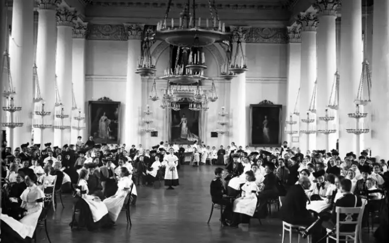Так появился Смольный институт благородных девиц, разместившийся в Воскресенском девичьем Смольном монастыре и вытеснивший оттуда немногочисленных монахинь, – здесь планировалось воспитывать девочек дворянского происхождения. Спустя полгода, опять же по инициативе И.И. Бецкого, при Воспитательном Обществе благородных девиц открылось отделение «для мещанских девиц», позже названное Александровским училищем. Через несколько десятилетий институты благородных девиц были уже в разных городах Российской империи.