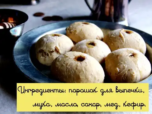 Берем: 2 с половиной чашки муки, пол-ложечки порошка для выпечки, по полчашки сливочного масла и коричневого сахара, яйцо, чашку меда, стакан кефира, по чайной ложке корицы и молотого имбиря, соль.