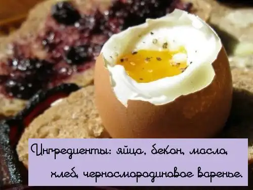 На двоих берем: пару яиц, 6 ломтиков хорошего бекона, 4 куска хлеба (хорошо бы домашнего!), масло, мед, черносмородиновое варенье. Из сыров с этой компанией явно не поссорится белый сыр типа чеддера.