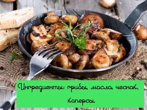 Берем: полкило грибочков, пару столовых ложек каперсов, три больших зубчика чеснока, пару ложек оливкового масла, сливочное масло.