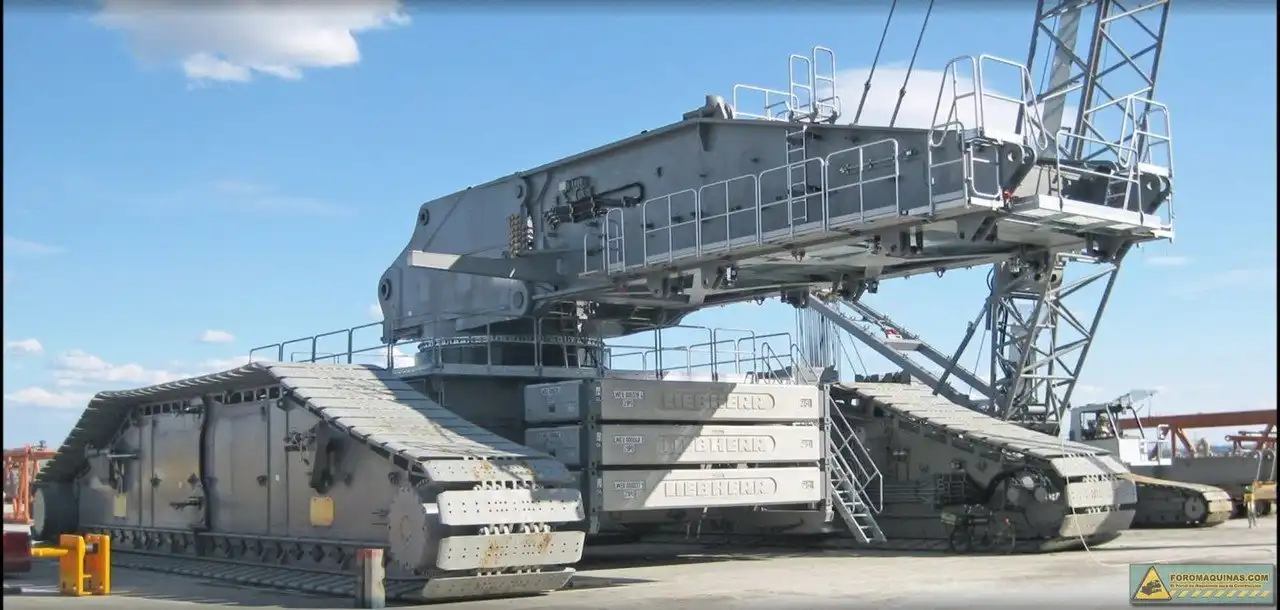 В движение этот кран приводят два дизельных двигателя Liebherr V8, суммарной мощностью 1360 лошадиных сил. А тросы, на которых поднимаются грузы имеют в диаметре 52 мм, каждый такой трос в состоянии в одиночку поднять вес в 62 тонны.