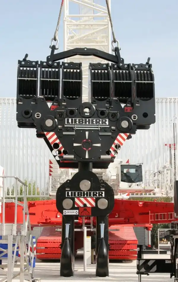 Только один крюковой блок крана LR13000 весит 111 тонн и имеет длину 9.7 метра. Его стрела может находиться на расстоянии от крана между отметками 60 и 144 метра (длина полутора футбольных полей), а крюки крана могут подниматься на высоту 270 метров (высота 73-этажного здания). К тому же, кран LR13000 является единственным подъемным краном таких габаритов, который может работать без использования дополнительного балласта, выступающего в качестве противовеса. Но при подъеме большого груза на большую высоту противовес все-таки используется, его роль играют блоки весом по 25 тонн, набранные из железобетонных блоков по 1.5 тонны весом каждый.