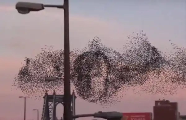 Жительница Нью-Йорка выложила на Youtube видеоролик со странным поведением птиц. На кадрах видно, как многочисленное скопление пернатых сбивается в тесную стаю и кружит на одном месте. В какой-то момент среди птиц становятся хорошо видны очертания человеческого лица.