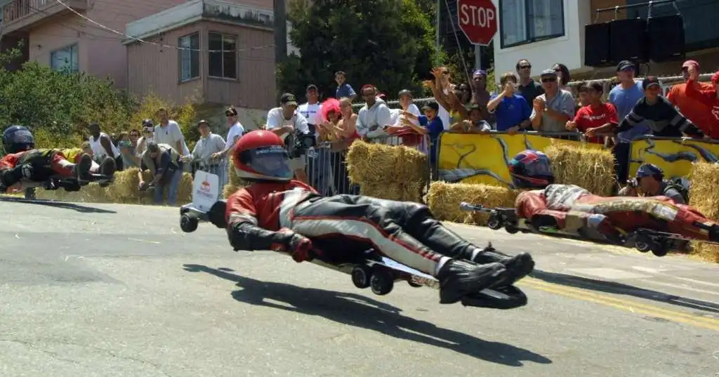 Соревнования на скоростному спуску на санях с колёсиками в городе немного напоминают зимний олимпийский вид спорта — санный спорт. Его участники могут разогнаться по асфальту до скорости 157 километров в час. Действующий чемпион мира — это Denis Araugo из Бразилии.