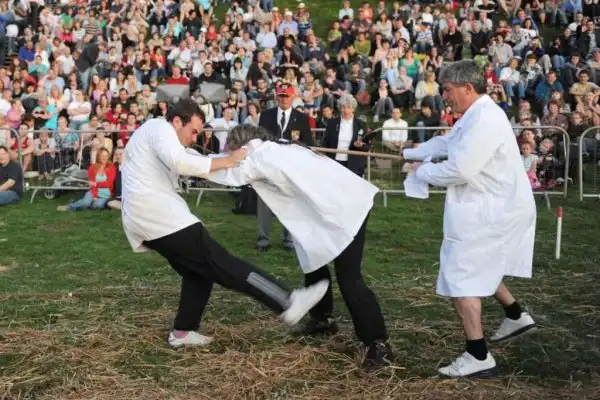 Соревнование по пинкам в голень берет своё начало еще в средних веках. Два участника этого состязания держат друг друга за плечи и пытаются пнуть друг друга в голень, чтобы повалить на землю. В этом году чемпионом стал Ross Langill из Ванкувера.
