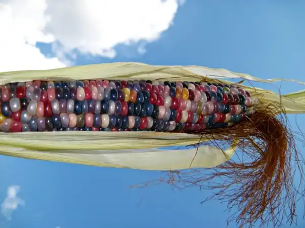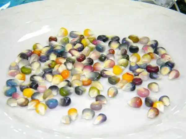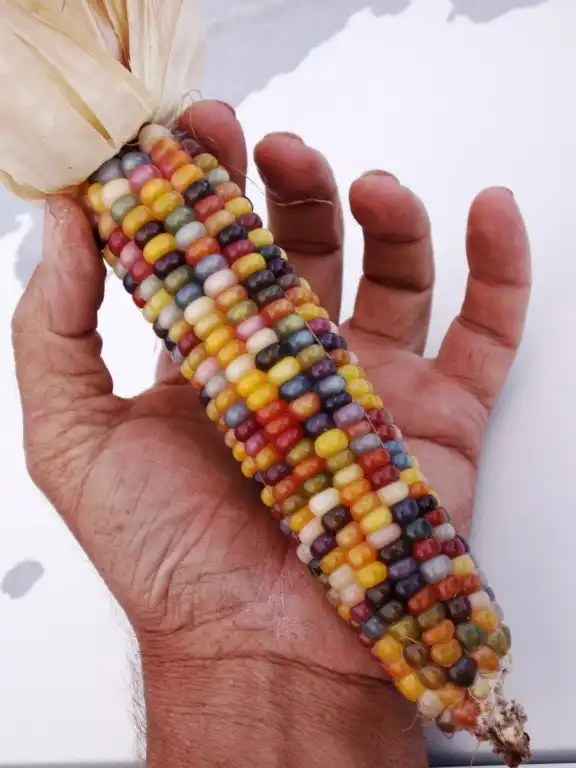 • По словам представителей компании Seeds Trust их семена цветной кукурузы были получены в результате открытого опыления негибридных зерновых культур (полностью проверенных на отсутствие ГМО в пыльце!) , с целью обогащения натуральных сортов семян в сельском хозяйстве.