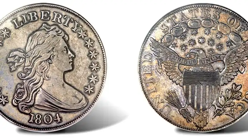 Хотя в названии указан 1804 год, свет монета увидела только в 1830. Этот доллар был произведен в качестве одного из подарков, которые должен был повезти Эдмунд Робертс в свою дипломатическую миссию в Сиам. Впоследствии монетный двор решил расширить линейку: были выпущены юбилейные доллары 2-го и 3-го класса. Самый первый же, относящийся, соотвественно, к первому классу и принадлежащий до недавнего времени Султану Муската, выкупил анонимный коллекционер более, чем за 4 миллиона долларов.