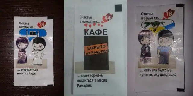 Создатель блога «Казань Онлайн» Ренат Садыков рассказал о жевательной резинке «Семья Фуада и Самиры», копирующей знаменитый бренд «Love Is» с поправкой на мусульманские ценности. Каждый вкладыш так же содержит рисунок, но в отличие от оригинала объясняет не слово «любовь», а понятие «счастье в семье».