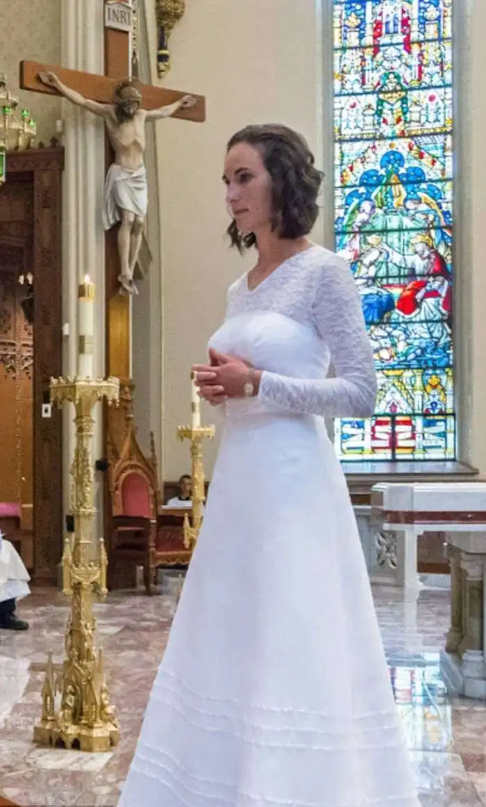 38-летняя девушка присоединилась к элитной группе «освященных девственниц», когда она «вышла замуж» за сына Бога в центре города Форт-Уэйн в минувшие выходные.