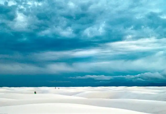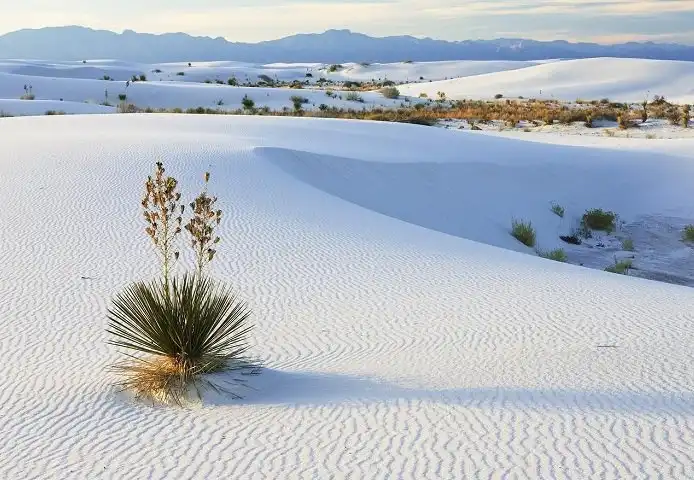 Необычный, искрящийся словно снег, песок пустыни всегда приводил в изумление как местных индейцев, так и переселенцев, окрестивших ее Фарфоровой. Сегодня здесь обустроен Национальный парк, привлекающий тысячи туристов со всего земного шара.