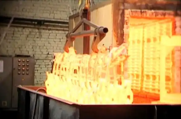 Свежее сплетенную цепь погружают в печь, где осуществляют закалку металла. В течение 6 часов жар в 1000 градусов раскаляет сталь, затем чтобы цепь остыла ее погружают в холодную ванну. После таких экстремальных процедур якорная цепь становится еще более прочной и износостойкой. И напоследок осталось еще кое-что. Якорная цепь проводит много времени под водой, а затем на поверхности окисляется и покрывается ржавчиной, которая разрушает металл. Для этого цепь необходимо защитить от коррозии, для этого на производстве металл обязательно консервируют, то есть покрывают густой смесью полимерных смол и битума. Только после этого можно считать якорную цепь готовой.