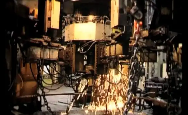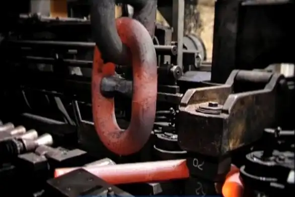 Основную работу в производстве цепи выполняет гигантский механизм, который плетет цепь. Роботизированный аппарат хватает клешней стальные прутки, зажимает их между электрическими нагревательными пластинами и мгновенно накаляет металл до красна. Пока пруток пластичен, аппарат вставляет его в готовое звено и мощными рычагами загибает края. Так продолжается процесс пока не будет изготовлена якорная цепь необходимой длины. Чтобы прочно закрепить звенья машина сваривает каждое сечение. Место, где кольцо смыкается, аппарат обрабатывает электрически током. Надежность цепи определяется прочностью самого слабого звена. Если швы не сваривать при высоких нагрузках звено разомкнется, а это недопустимо. Дело в том, что якорная цепь должны выдерживать не только вес самого якоря, опускающего на дно, но и удержать на месте судно, особенно при сильном течении на больших реках или в открытом море.