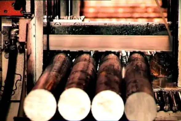 Для производства гигантской цепи нужны титанические усилия. Стальные звеня, плетут из стальных заготовок-прутьев цилиндрической формы, но чтобы металлические прутья стали звеньями цепи для начала их нужно нарезать. Прутья укладывают в ряд, а затем отправляют под нож, который с легкостью распиливает сталь.