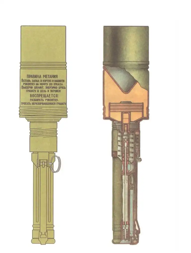 После Гражданской войны в России на базе французской гранаты F-1 была разработана одна из самых распространённых оборонительных гранат. Граната получила название Ф-1, корпус от французской гранаты остался прежним, но был заменён запал гранаты на запал системы Ф. В. Ковешникова. В 1928 году была принята на вооружение РККА. Позже граната была еще раз доработана — стал использоваться запал УЗРГ-42 с задержкой 3,2-4 секунды. Масса гранаты в зависимости от модификации составляет 600-750 грамм. Радиус поражения до 200 метров.