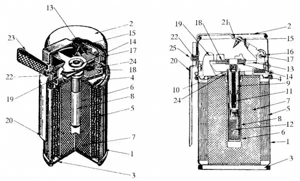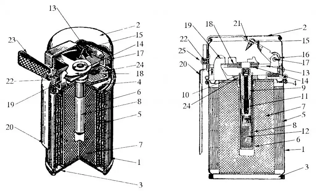 Круглую форму корпуса имеют также гранаты РГО и РГН. В гранатах применяется новый запал УДЗС, позволяющий производить подрыв при встрече с любой поверхностью. Для безопасности бойца, подрыв невозможен в первые 1,3-1,8 секунды после броска. Самоликвидация гранаты происходит через 3,2-4,2 секунды. Радиус возможного поражения гранаты РГО достигает 100 метров, РГН — лишь 35 метров.
