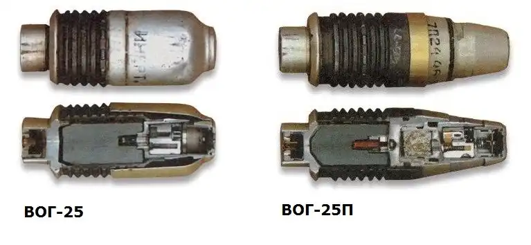 Специально для подствольных гранатомётов была разработана дульнозарядная граната ВОГ-25. Выстрел выполнен по «безгильзовой» схеме, метательный заряд из пироксилинового пороха П-200 вместе со средством воспламенения располагается в донной части корпуса гранаты. Такая схема позволила упростить конструкцию гранатомета, повысить надежность и боевую скорострельность. Частота поражения мишеней на тактическом поле от разрыва гранаты ВОГ-25 в 3-4 раза выше по сравнению с западными аналогами.