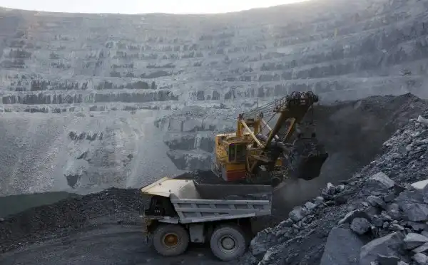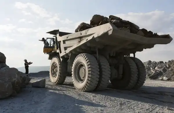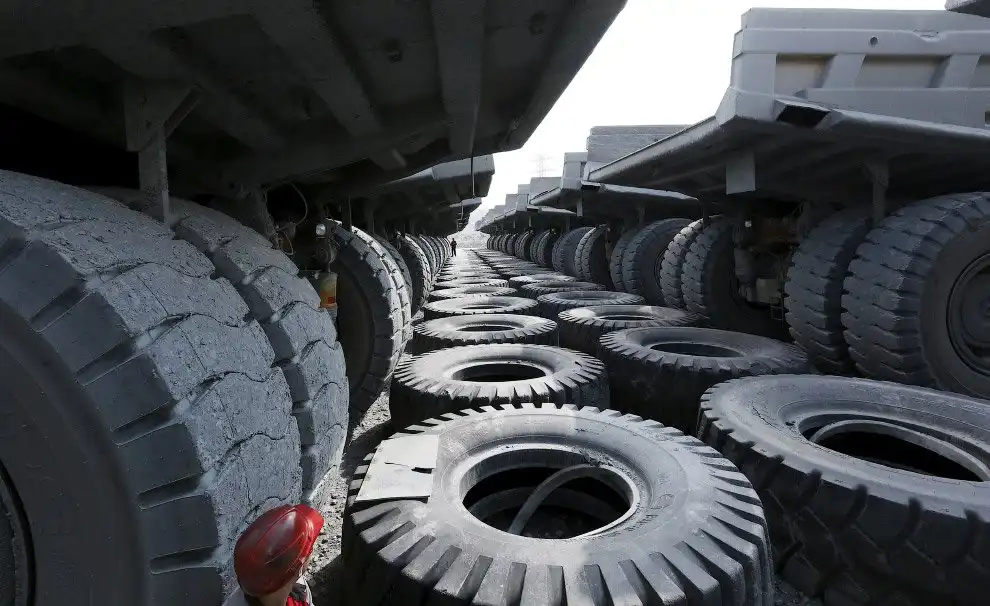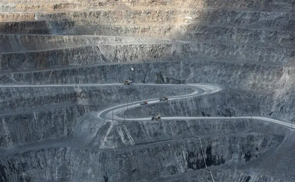 Здесь трудятся самосвалы Катерпиллер грузоподъемностью 136 тонн.
