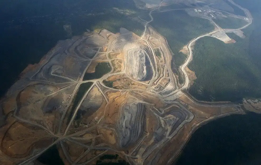 Вид на золоторудное месторождение Олимпиада с высоты птичьего полета, 1 июля 2015.