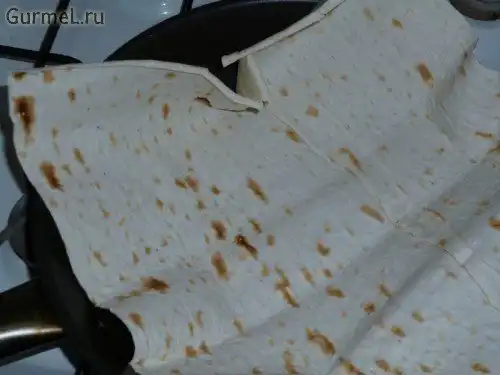 Лаваш тонкий - кусок размером чуть больше сковороды.