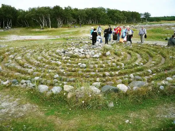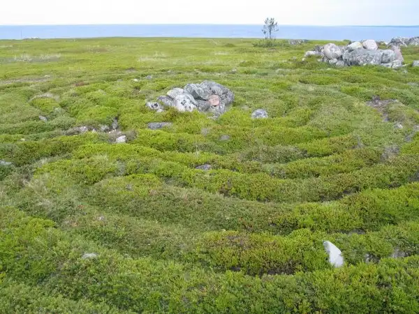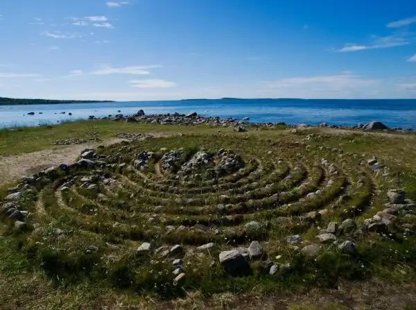 «Северные лабиринты» – это спиралевидные фигуры, которые представляют собой разнообразные системы ходов, выложенных из валунных камней небольшого размера. Размеры валунов варьируют в диаметре от 3,40 до 24, 40 м, их высота не превышает 50 см.