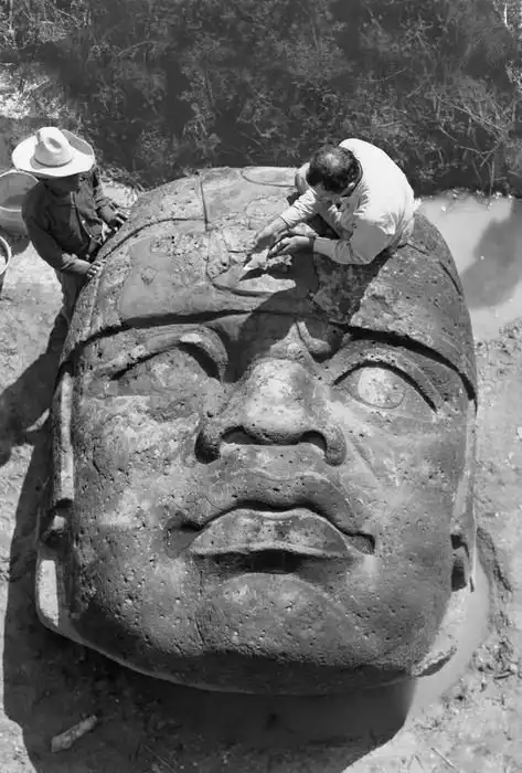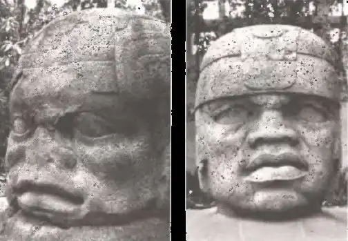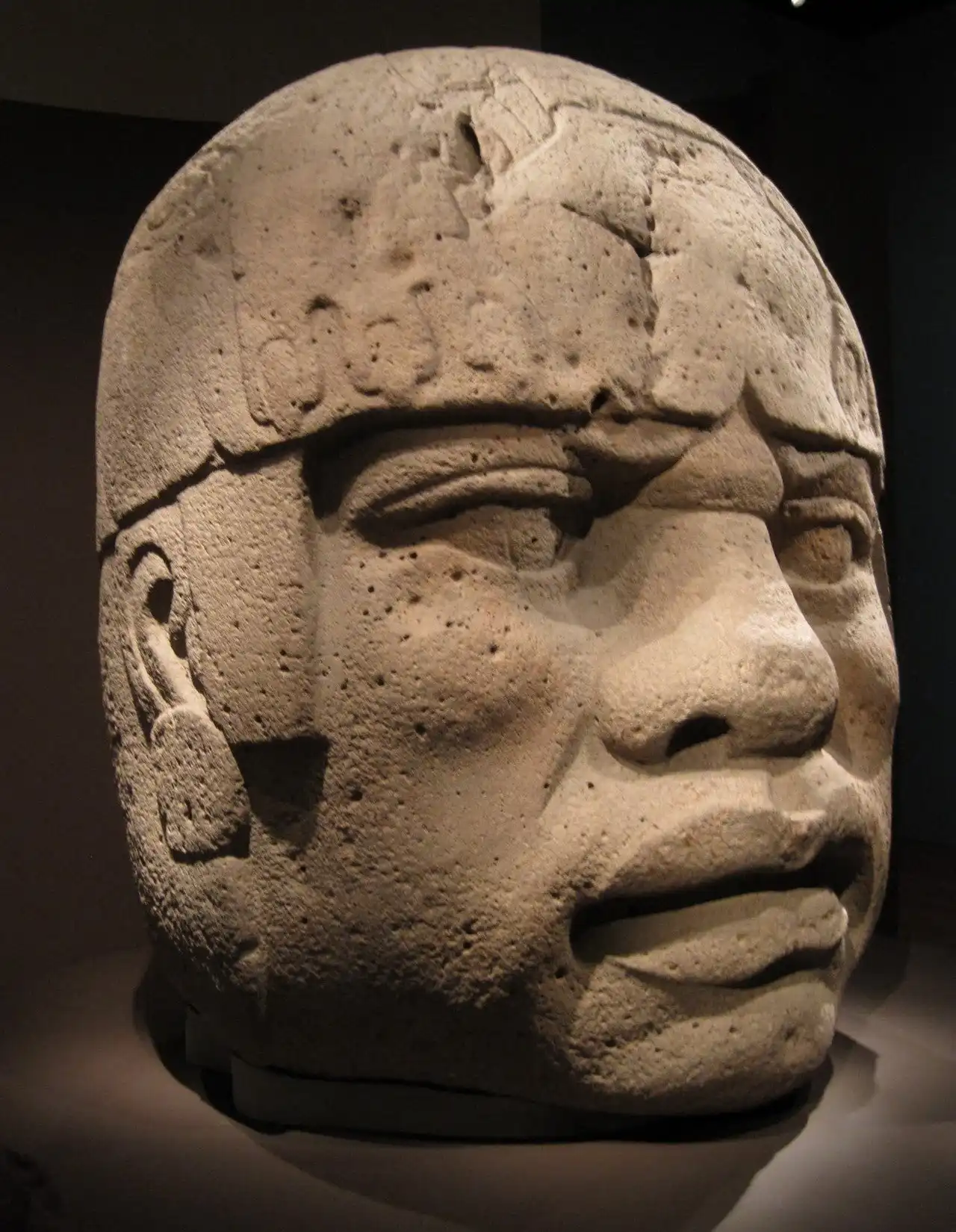 Большинство каменных голов ольмеков изображает человека с негроидными чертами лица. Но 2000 лет назад в Новом Свете не было черных африканцев, первые из них появились намного позже конкисты, когда началась работорговля. Однако существует твердое свидетельство палеоантропологов, что в составе одной из миграций на территорию американского континента во время последнего ледникового периода действительно попадали люди негроидной расы. Эта миграция происходила около 15 тыс. лет до н.э.
