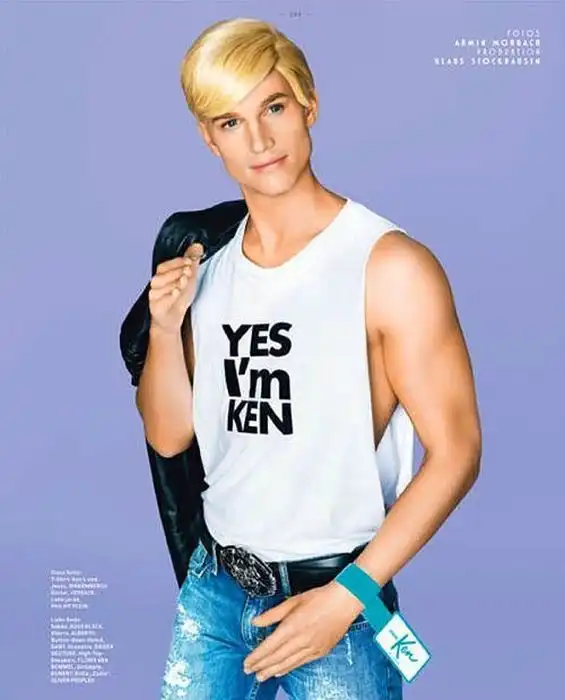 Американская модель Аарон Брукнер Аарон позировал в качестве Кена для немецкого журнала GQ, и у него это получилось идеально! Посмотрите только на положение его руки, это удивительно, но немного жутко, не так ли? Скорее всего, такой эффект – результат совместных усилий стилистов, фотографа и фотошопа. Посмотрите на его портфолио и, к вашему удивлению, вы поймете, что он просто чертовски красив, и ничуть не жуток.