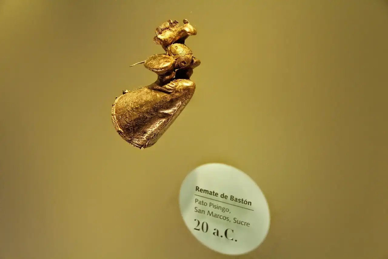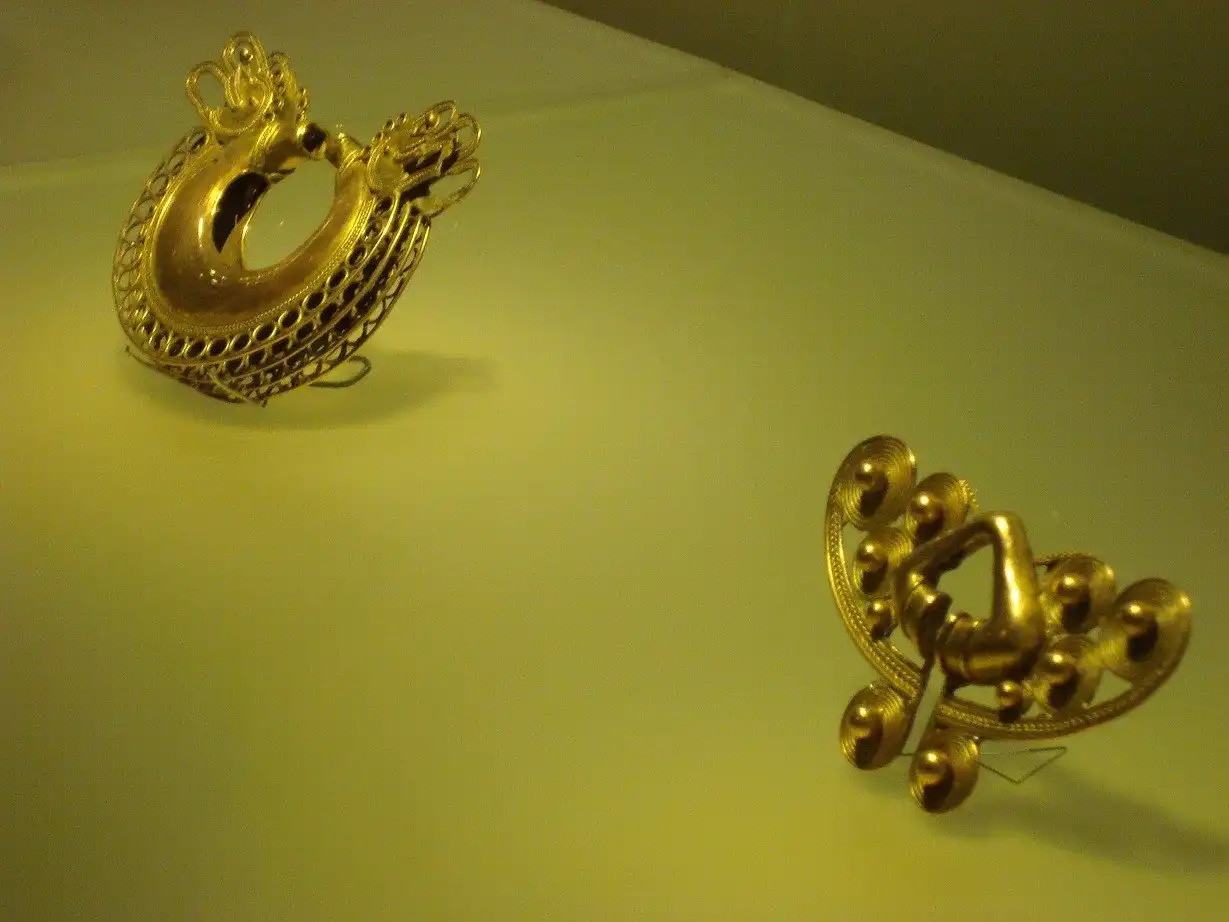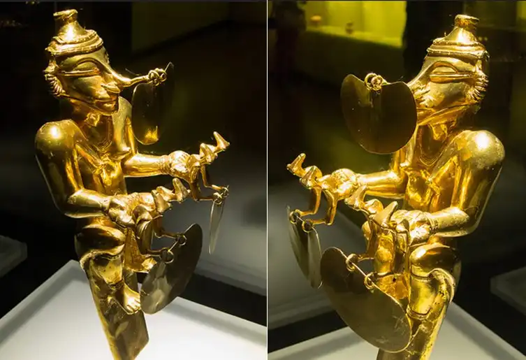 Встречаются настолько нежные и изящные вещицы, что даже не верится, что они были изготовлены с помощью самых примитивных инструментов и глиняных форм. Кое-где на экспонатах можно увидеть отпечатки пальцев мастера, что когда-то дало основание ложному предположению европейцев о ручном способе обработки раскаленного золота индейцами. На самом же деле, отпечатки просто оставались на глиняной форме для литья, и теперь, спустя столетия, можно увидеть их на золотых вещах.