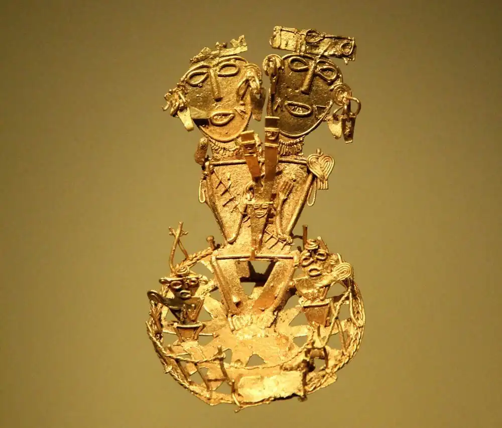 Колумбийские индейцы еще во времена конкистадоров удивляли последних своим умением сплавлять золото с медью и с платиной, наверное, поэтому колумбийское золото и ценилось выше, чем золото перуанцев – наследников инков. Умели они изготавливать и удивительно сложные ювелирные изделия, к сожалению, таких экспонатов очень мало дошло до наших дней. Ведь испанцы интересовались исключительно весом золота, а не его художественной ценностью.