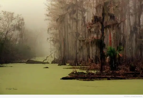 Так же в болоте водятся очень крупные аллигаторы, которые непротив свежего мяса туристов. Покой болота нарушает вой по легендам это стонет rou-ga-rou – каджунской версии вервольфа. Эти болота мечта готов, так как по легендам болото Манчак проклято черной королевой вуду, наложила проклятье на это место она в XX веке, когда её взяли в плен.