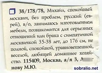 Брачные объявления. Мужчины