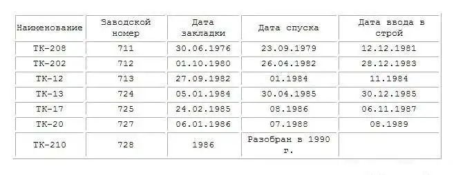 даты закладки, спуска на воду и ввода в эксплуатацию