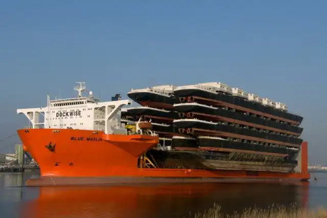 Если нужно перевезти 22 баржи, каждая весом в 3000 тонн, в другой порт, нужен довольно крепкий корабль. Например, Blue Marlin – один из самых необычных транспортных суден, предназначенный для того, чтобы перевозить негабаритные грузы по морю.