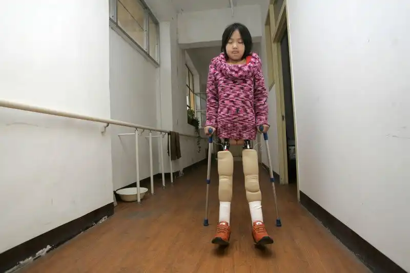 В 4 года девочка-китаянка потеряла ноги в результате автомобильной аварии в 2000 году. Жила с семьей в отдаленном районе Китая, возможности поставить детские протезы не было, да и средств у семьи на них тоже не было. Да и ребенок рос, пришлось бы часто менять протезы или покупать дорогие, которые подстраиваются.