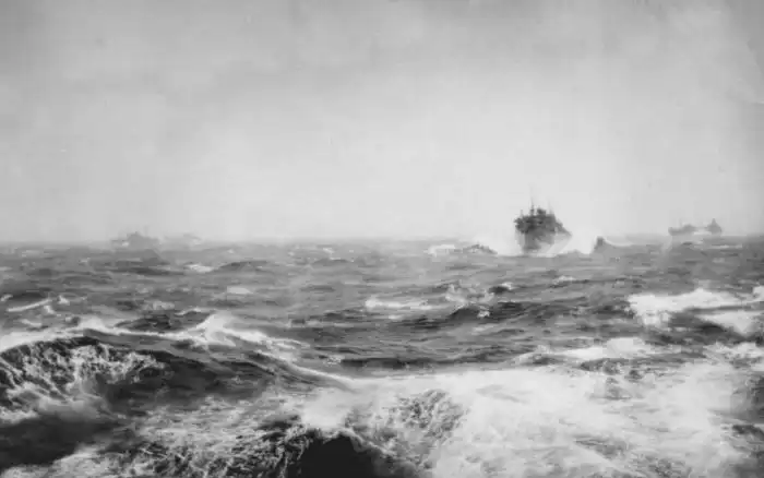 Вскоре сотни торговых судов стали передвигаться в конвоях. Они были укомплектованы гражданскими моряками. Британия собрала добровольцев со всех уголков своей империи. Эти моряки трудились, рискуя жизнью, чтобы доставить в Великобританию жизненно важные грузы. В результате немецкие субмарины потопили 110 одиночных транспортов, но из 6000 в составе конвоев жертвами «волчьих стай» Карла Дёница стали лишь четыре торговых судна.