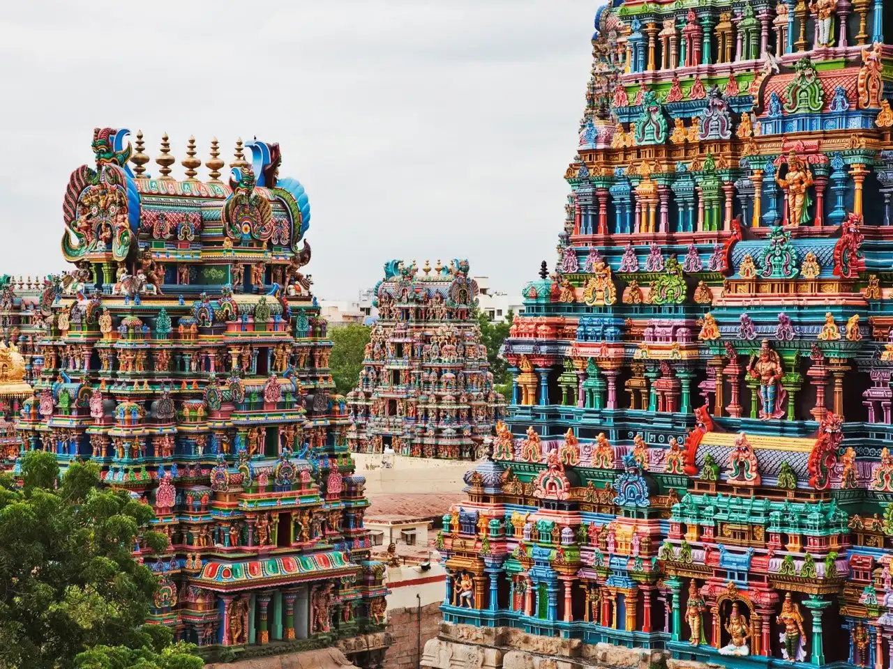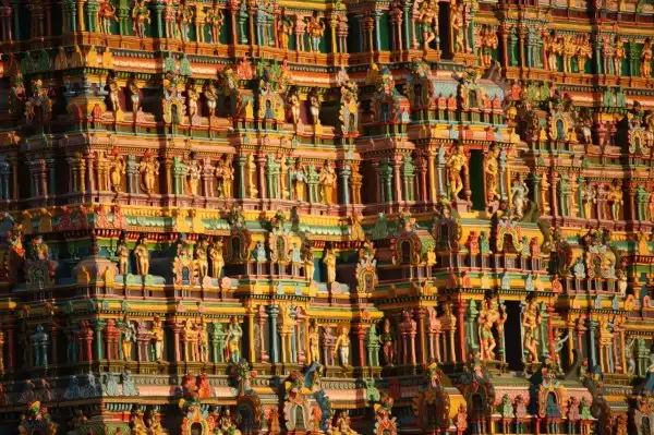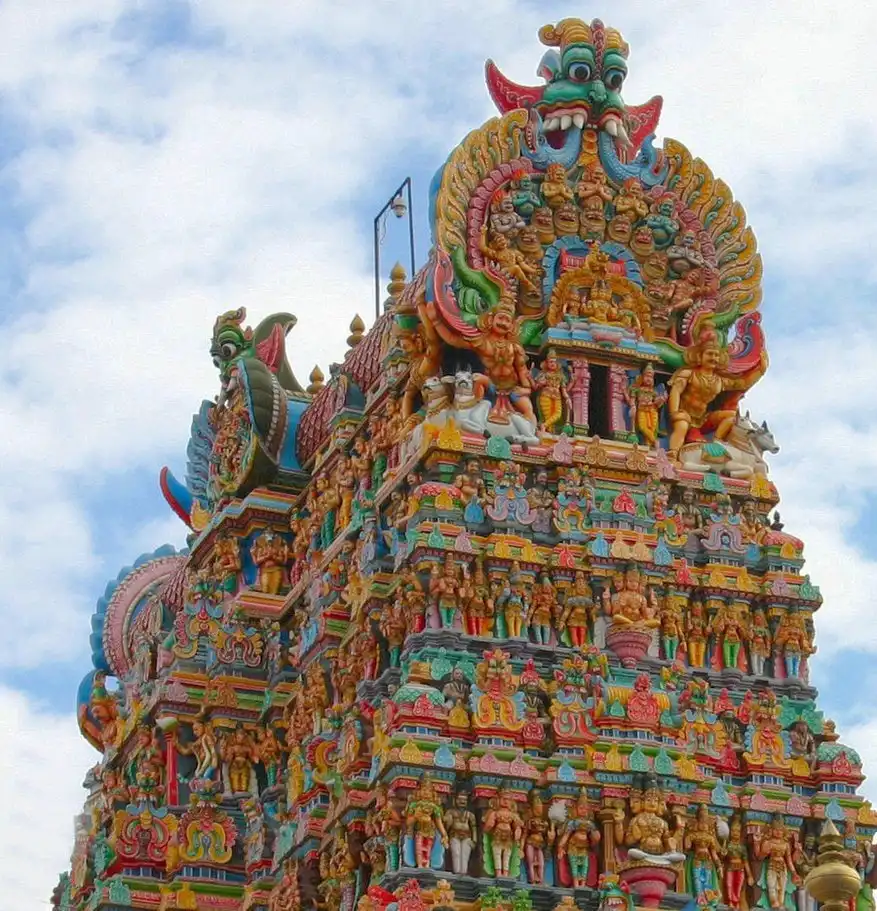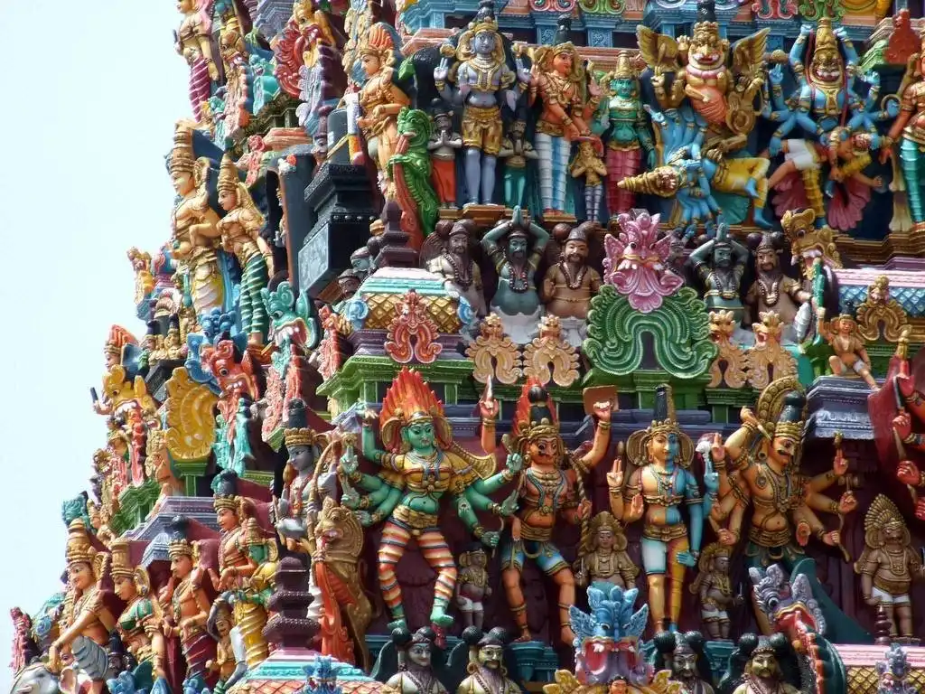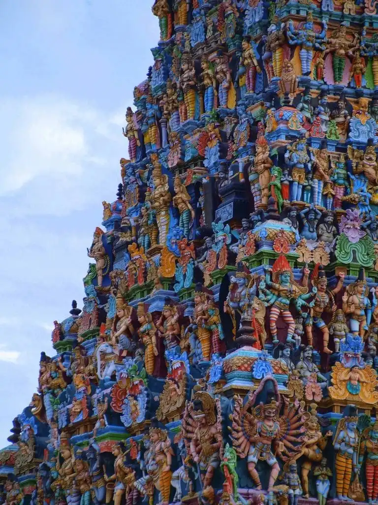 Каждая гопурам Минакши Сундаресварар является настоящим произведением архитектурного искусства: с самого низа и до верхушки они покрыты великолепными скульптурами, выкрашенными в яркие цвета.
