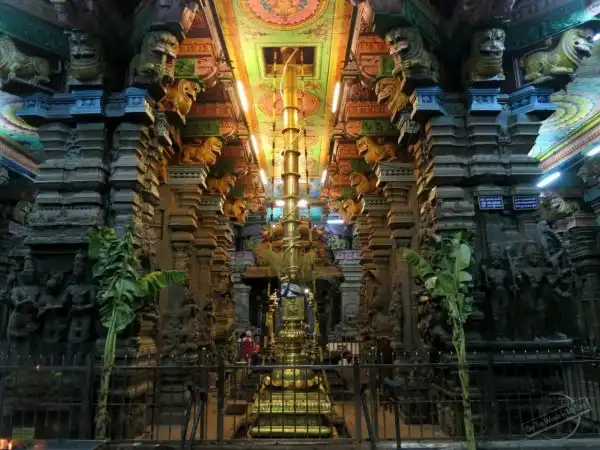 А самой старой считается восточная гопурам, которая была построена еще в 1216-1238 годах по приказу короля Маравармана Сундара Пандьяна. А также на территории комплекса располагается две большие позолоченные вимана – скульптурные башни-павильоны, в которых располагаются главные святыни храма. В одной вимана находится высеченное из черного камня с изумрудным оттенком изображение Богини Минакши, в другой – скульптура Сундаресварара. Помимо Парвати и Шивы, в храме также поклоняются Ганеши, скульптура которого стоит неподалеку от виманы Сундаресварара.