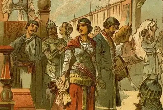 Краткая биография: Плавает по морю — приезжает по Днепру в Киев на красивом корабле, чтобы посвататься к дочери или племяннице князя. Дарит тому богатые подарки и просит кусок земли, на котором за одну ночь строит роскошный дворец.